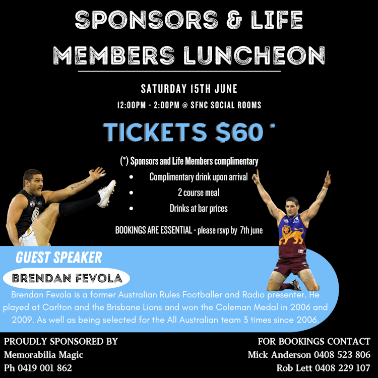 Contact Mick or Rob asap,EFT at the Club or Direct Credit SFC BSB 123 603 22726478 once booking is confirmed…