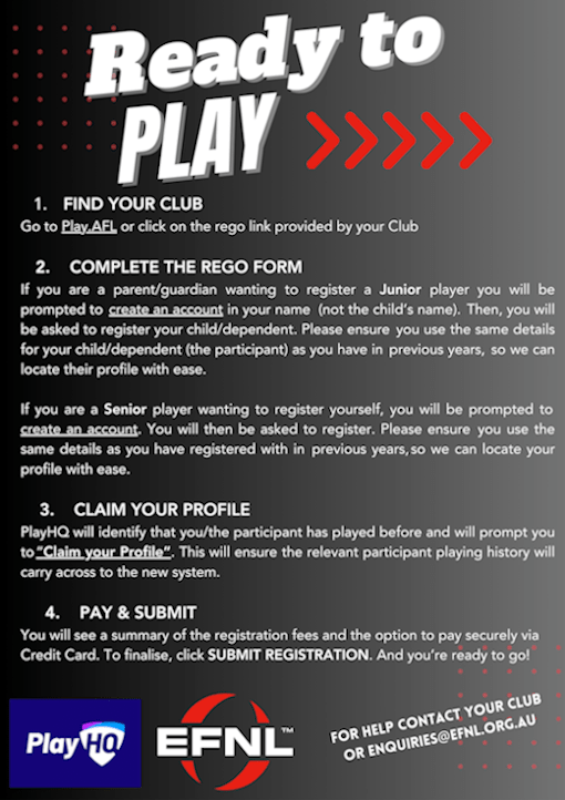EFNL Club Registrations for Season 2024 are open on PlayHQ December 21, 2023 by Scoresby FNC in Announcements PLAYHQ CLICK HEREShare this post: Facebook Twitter