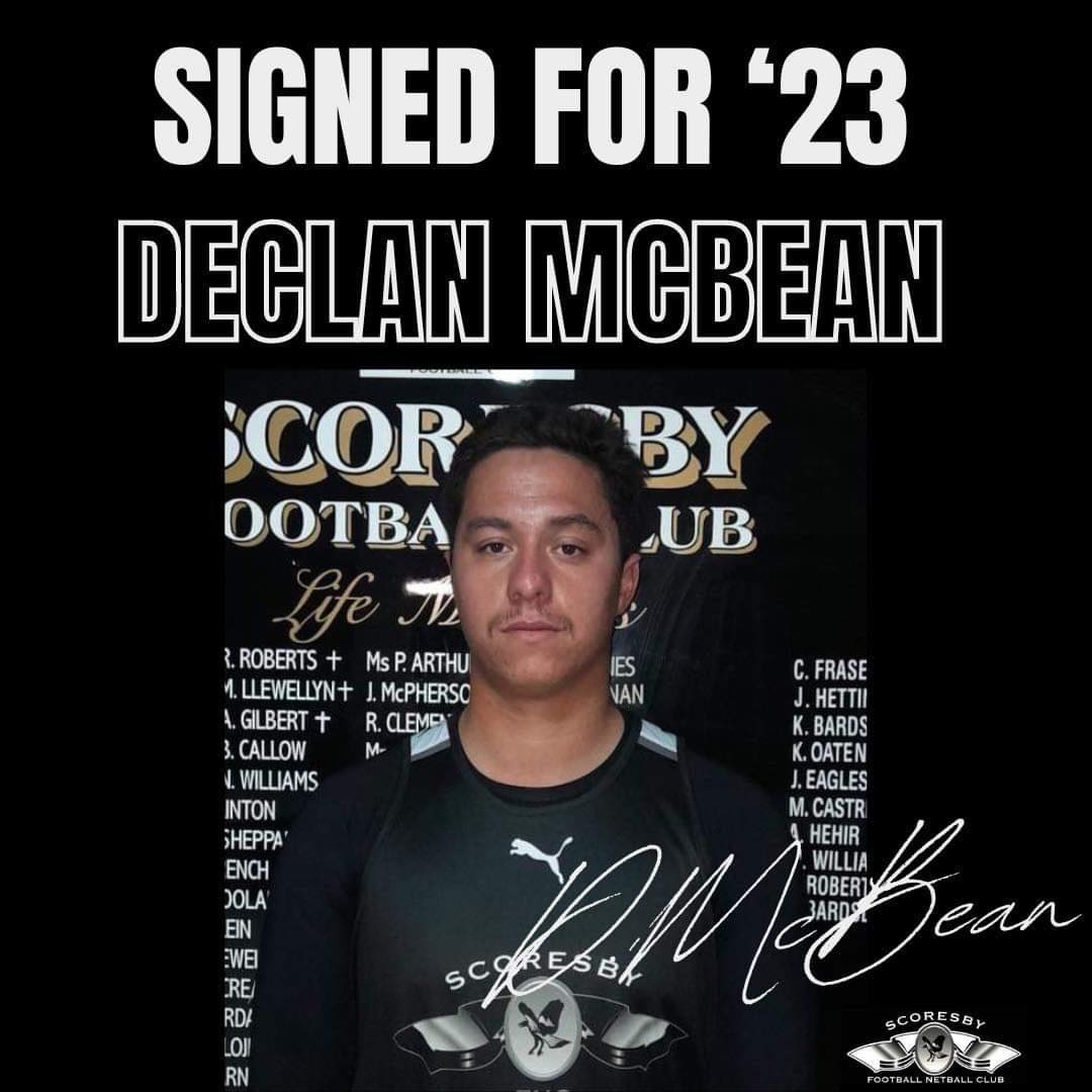 The Scoresby FNC is pleased to announce the signing of new player Declan McBean coming from the Noble Park Football Club.