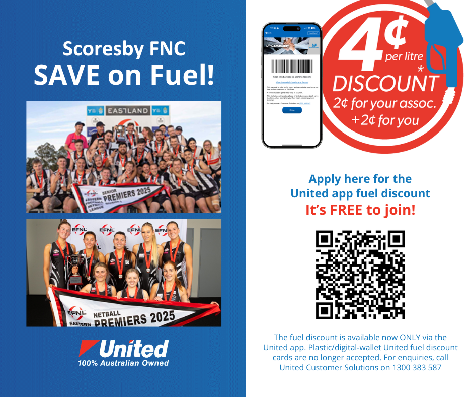 Fuel up with @unitedpetroleum and support Scoresby FNC! ⛽️